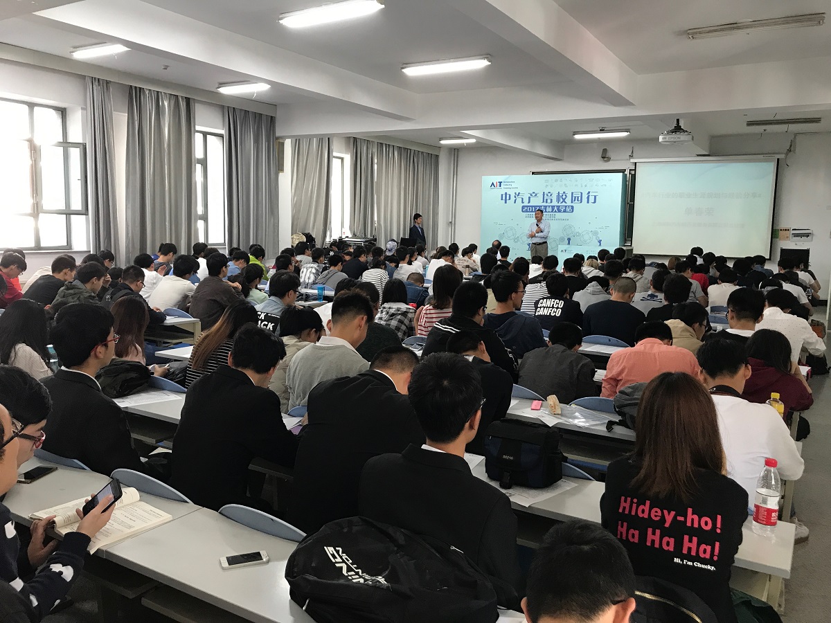 为有志于汽车事业的老员工创造宝贵机会,面对面聆听行业前辈的智慧分享,明确志向,精进层次,感悟生涯。9月20日下午,beat365亚洲体育官方网站在南岭校区逸夫教育大楼B114教室举办了“2017中汽产培校园行”活动。上海国际汽车城开发服务有限公司总经理单春荣,中国汽车产业培训基地主任、教授级高级工程师浦维达,中国汽车产业培训基地顾问、原同济大学教授傅立志,汽车工程公司党委副书记胡忠巍,东区综合办员工办公室教育科科长柴媛参加了此次活动。