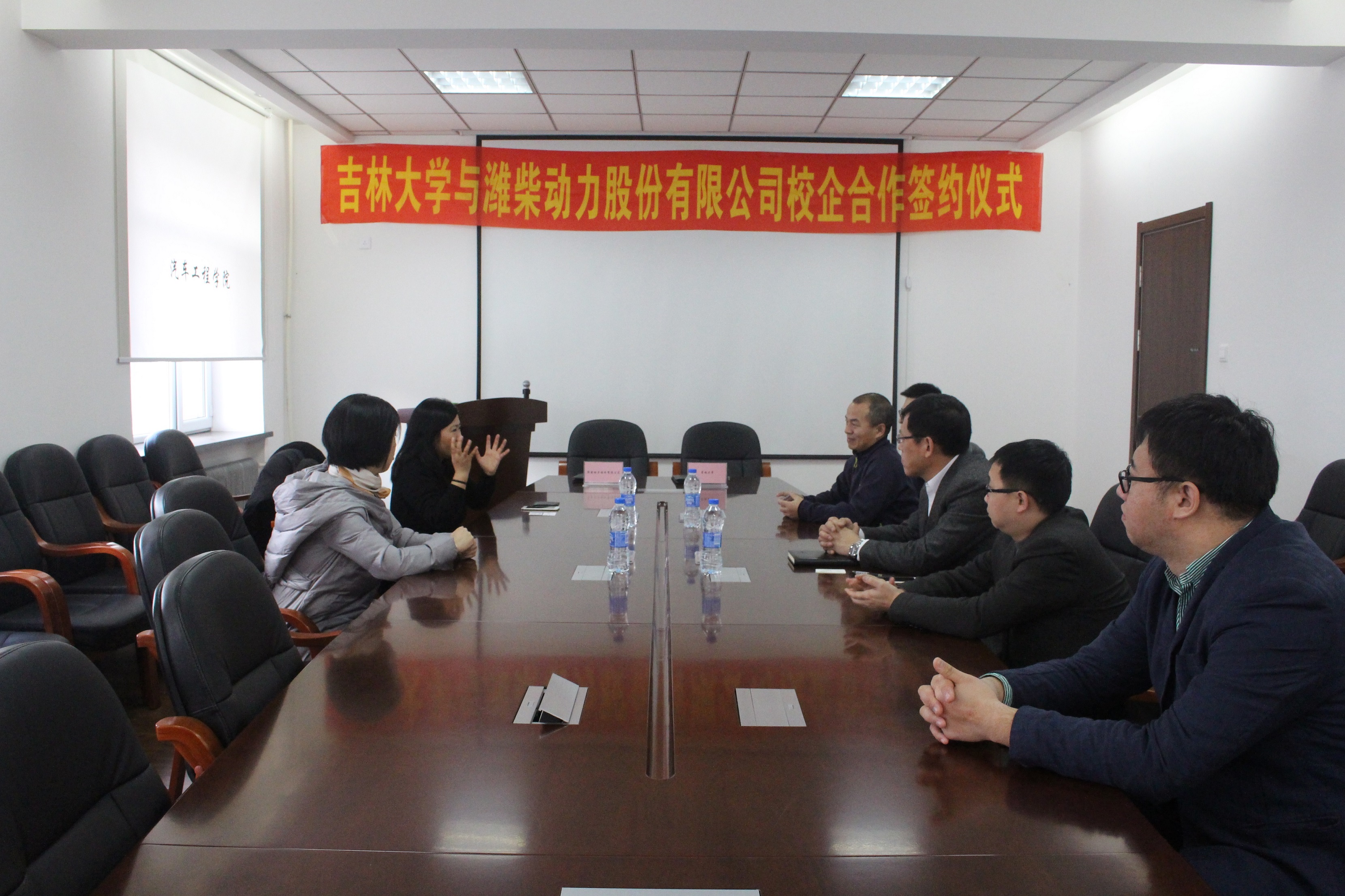 2016年12月9日,beat365亚洲体育官方网站与潍柴动力股份有限公司校企合作签约仪式在公司会议室举行。潍柴动力股份有限公司人力资源部部长郭虹,人力资源部主管姜舒宁,beat365亚洲体育官方网站公共关系处副处长冉军,汽车工程公司党委书记李善兴出席了签约仪式。