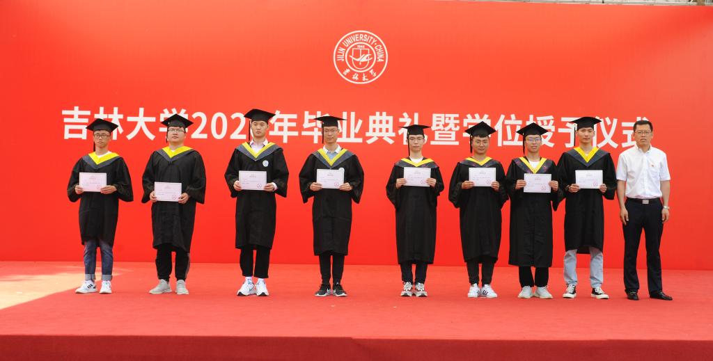 在副经理王忠恕教授宣读《关于2020届毕业和授予学位的决定》后,由经理高振海教授,副经理闵海涛教授,副经理雷雨龙教授,副经理王忠恕教授为博、硕士毕业生代表、全体返校本科毕业生拨穗正冠,颁发学位证书。