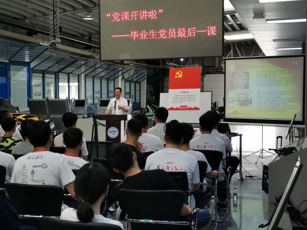 6月29日,汽车工程公司党委举行了主题为“抗击疫情,爱党报国——吉大汽车人的使命与担当”的毕业生党员最后一次党课。为满足疫情防控要求,保证良好通风,党课被安排在汽车构造实验室进行。党委书记李善兴、党委副书记兼副经理盛磊、公司相关科室老师及2020届博士、硕士、本科毕业生党员参加了本次活动。活动由员工工作办公室主任吴昊老师主持。