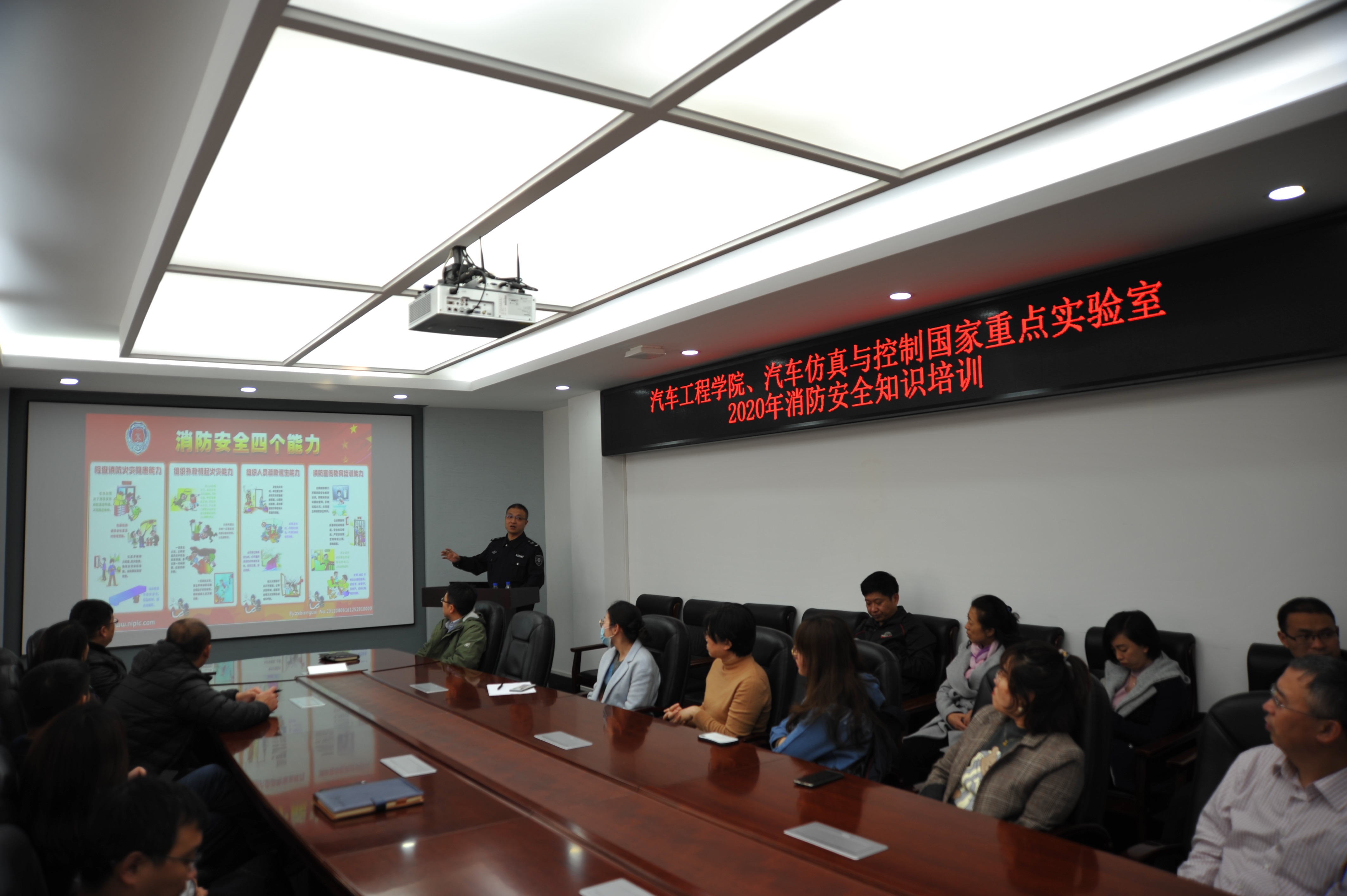 11月5日下午,beat365亚洲体育官方网站、汽车仿真与控制国家重点实验室联合东区保卫办举行了“2020年消防安全知识培训与防火疏散演练”活动。公司行政副经理林海兰、重点实验室副主任杨得军以及师生代表参加了此次活动。本次活动分为安全知识讲座、防火疏散演练和消防器材使用三个环节。