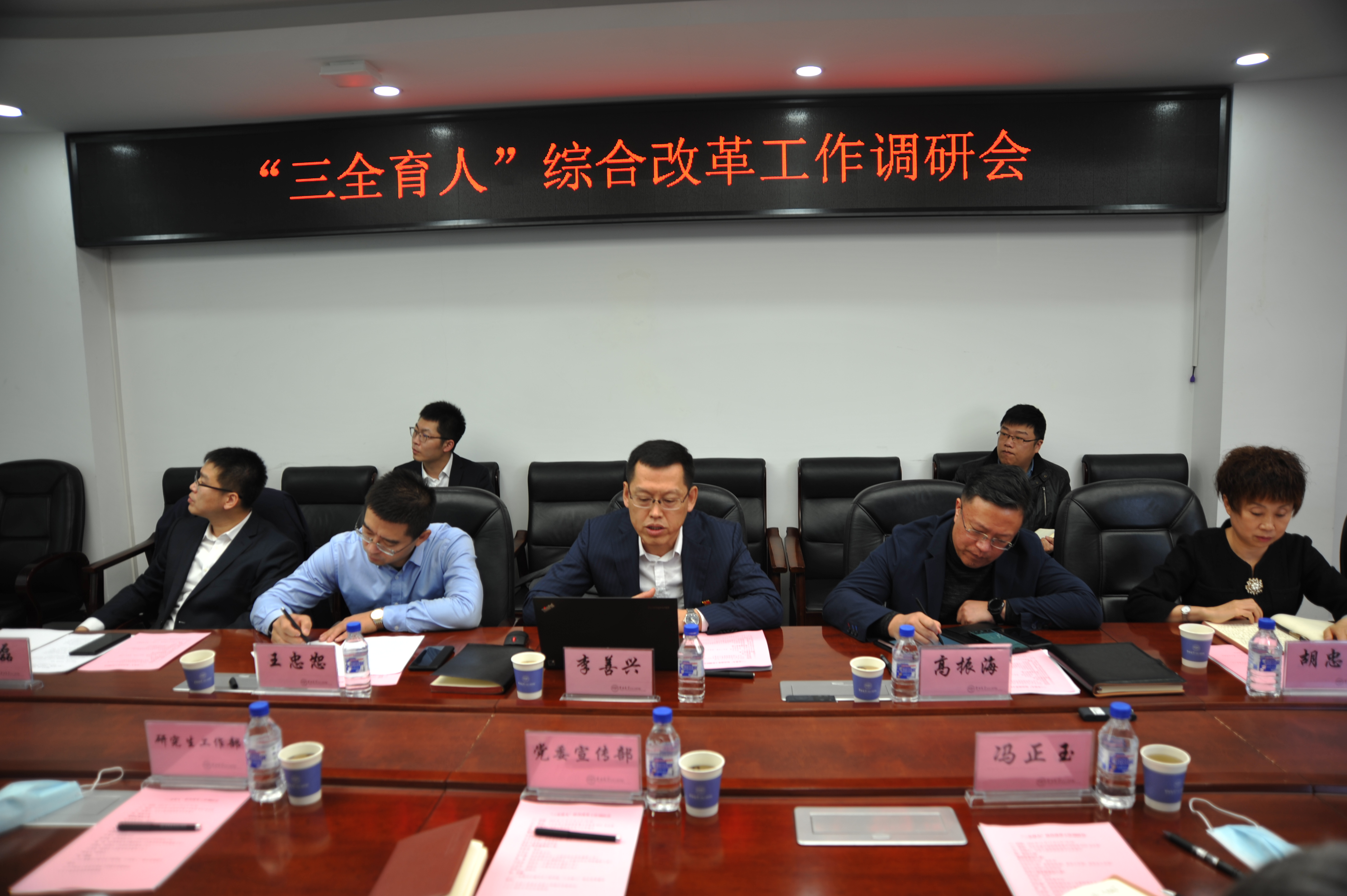 李善兴书记代表公司党委对公司的“三全育人”综合改革工作进行了汇报。他从“课程育人重思政”“科研育人重协同”“实践育人重平台”“文化育人重风尚”“网络育人重阵地”“心理育人重帮扶”“资助育人重精准”“组织育人重创新”“管理育人重服务、服务育人重管理”等十个方面进行了汇报,对“三全育人”综合改革工作存在的问题以及下一步的工作提出了具体的举措。公司领导班子成员结合工作实际和自己的感悟与各部门负责人进行了积极地交流。