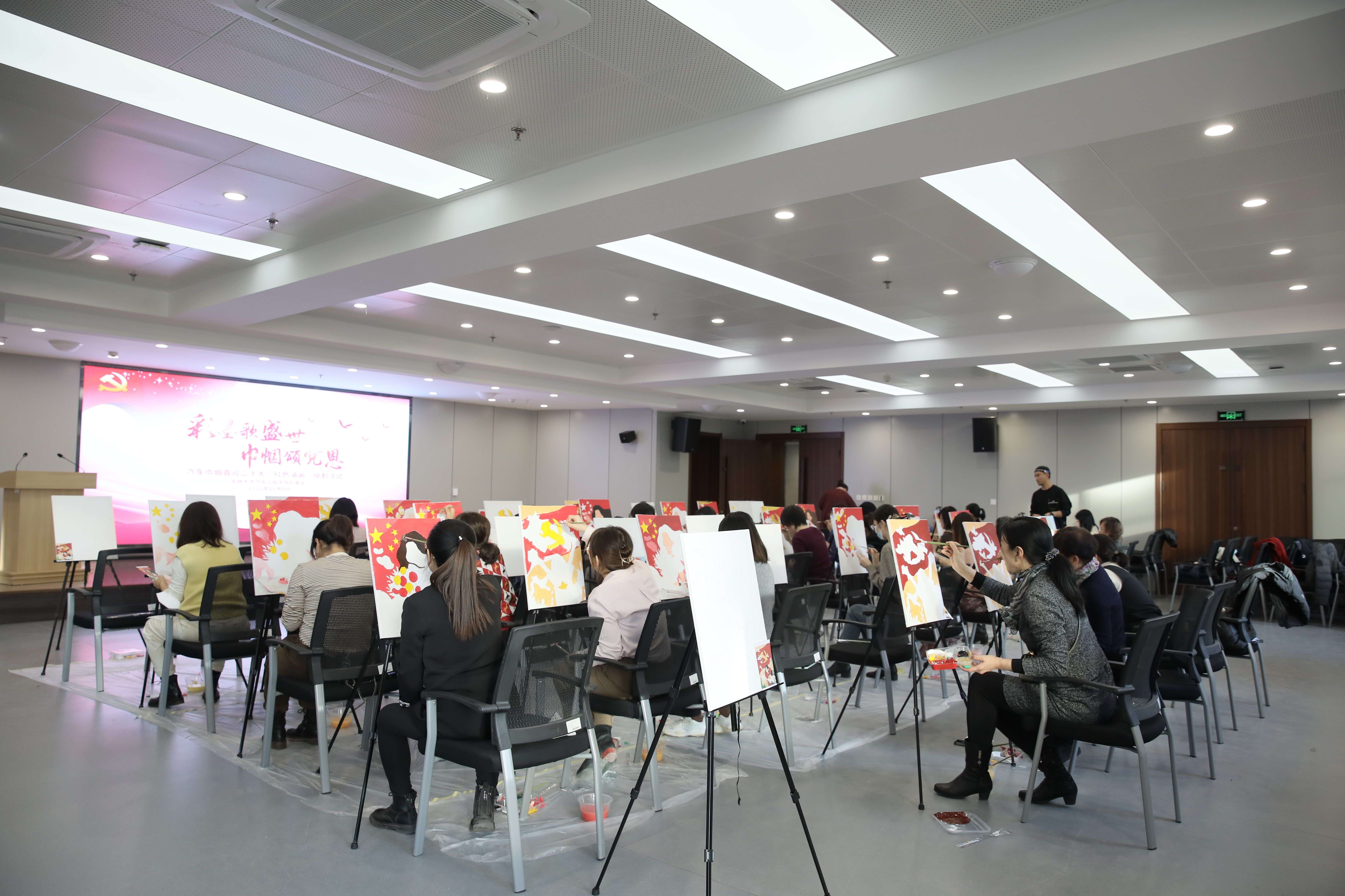 为庆祝党的二十大胜利召开,beat365亚洲体育官方网站妇委会于11月4日举办了“彩墨歌盛世,巾帼颂党恩”——汽车巾帼喜迎二十大“红色油画”绘制活动,旨在以活动强化思想引领,展现巾帼文化自信,通过挥洒彩墨抒发巾帼爱国情,通过笔下佳作诠释巾帼向党心。公司党委书记黄忠华、副书记胡忠巍、副经理林海兰以及女教职工参加了此次活动。活动由公司副经理、妇委会主任林海兰主持。