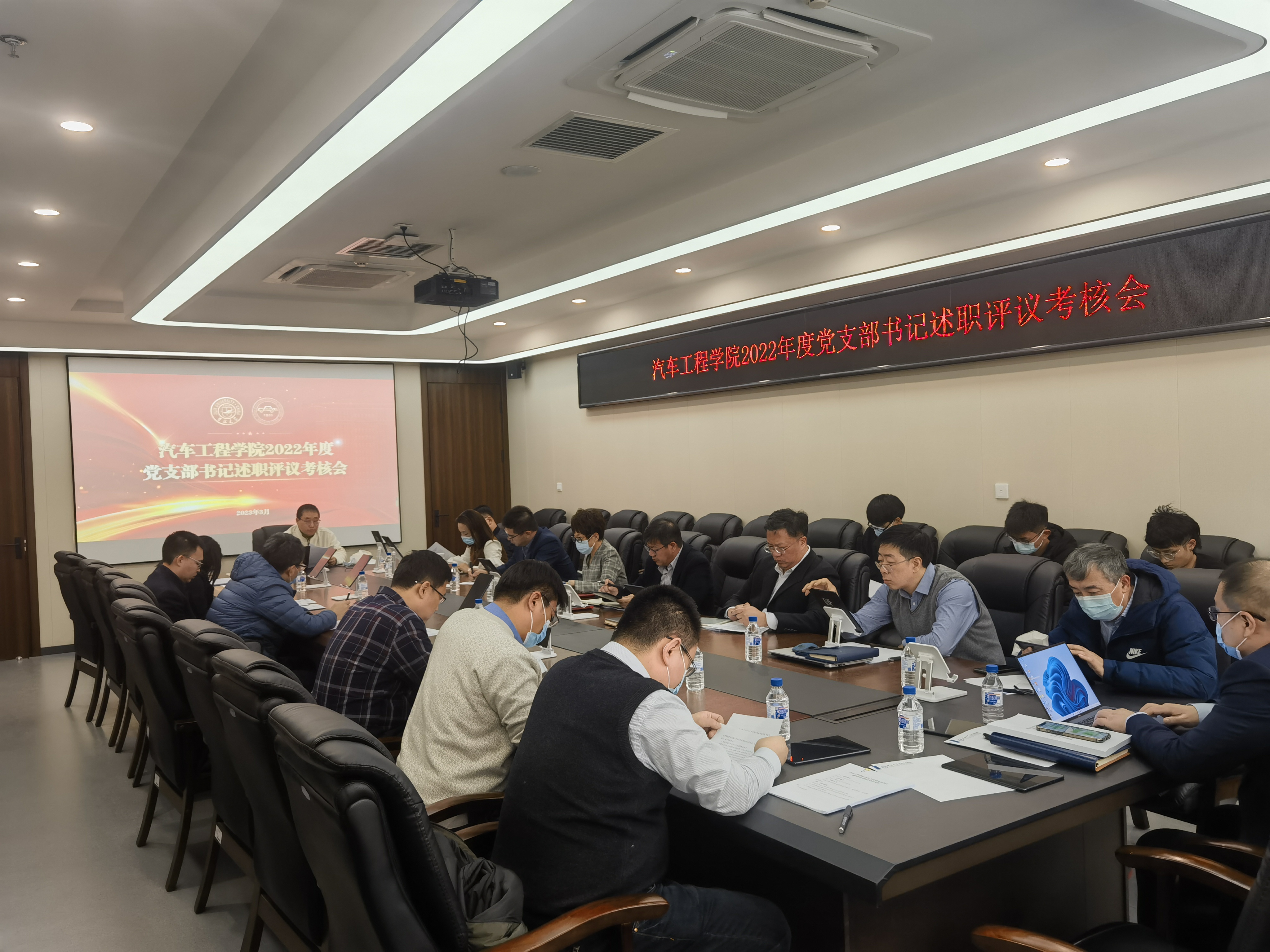 为深入学习贯彻习近平新时代中国特色社会主义思想和党的二十大精神,树立强化基层党组织建设鲜明导向,根据公司党委组织部《关于开展2022年度全校各级党组织书记抓基层党建述职述责述廉评议考核的通知》要求,汽车工程公司党委于2023年3月13日下午召开了2022年度党支部书记述职评议考核会。公司党政领导班子成员、党委委员和全体党支部书记参加会议。会议由公司党委书记黄忠华主持。