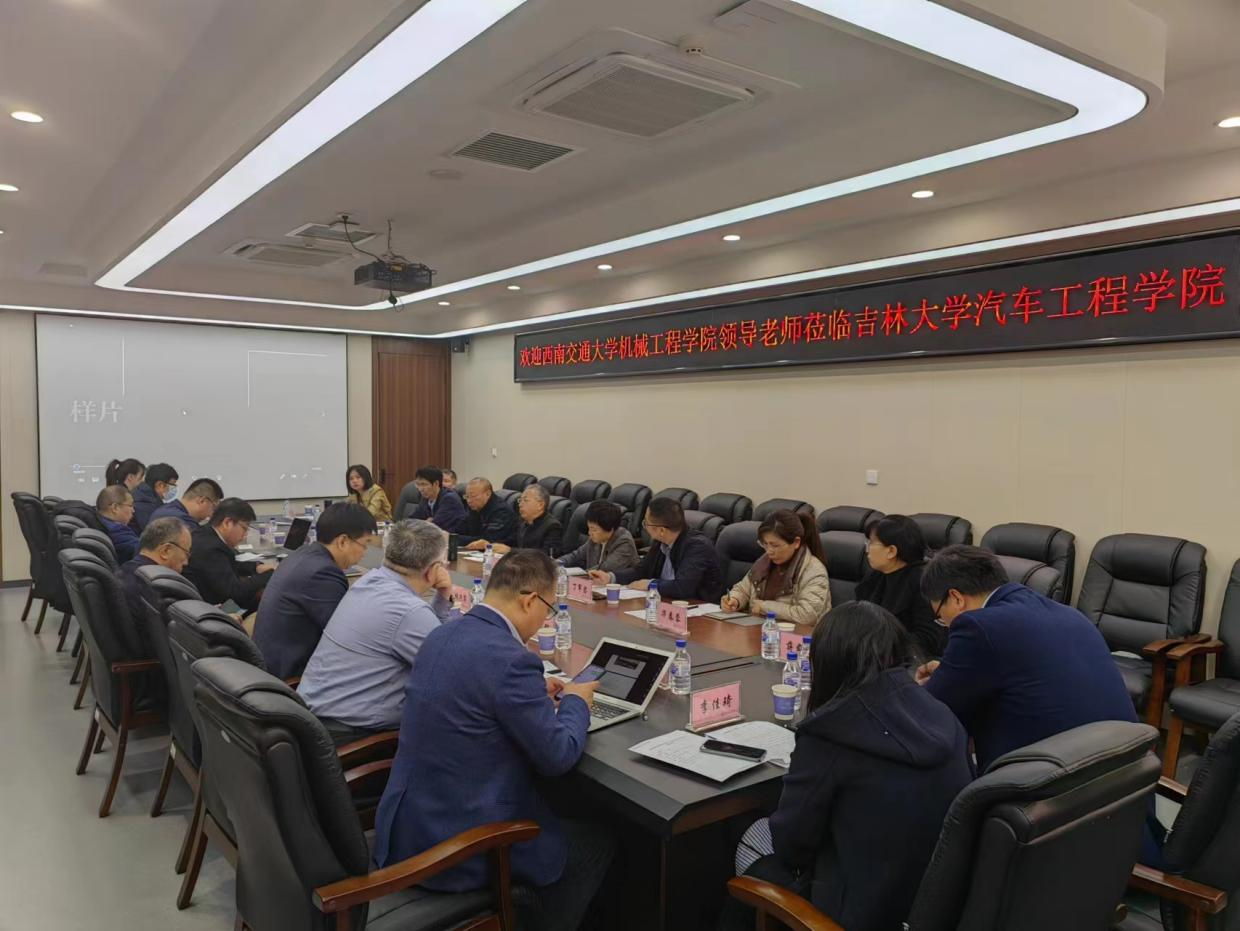 西南交通大学机械工程公司副经理田怀文、曾东红等一行9人于2023年4月11日上午来到beat365亚洲体育官方网站进行工作调研。汽车工程公司党委书记黄忠华、教学委员会主任高青、副经理胡兴军、副经理王忠恕、副经理朱冰、各系主任、教学副主任及相关科室负责人参加了调研座谈。会议由副经理胡兴军主持。