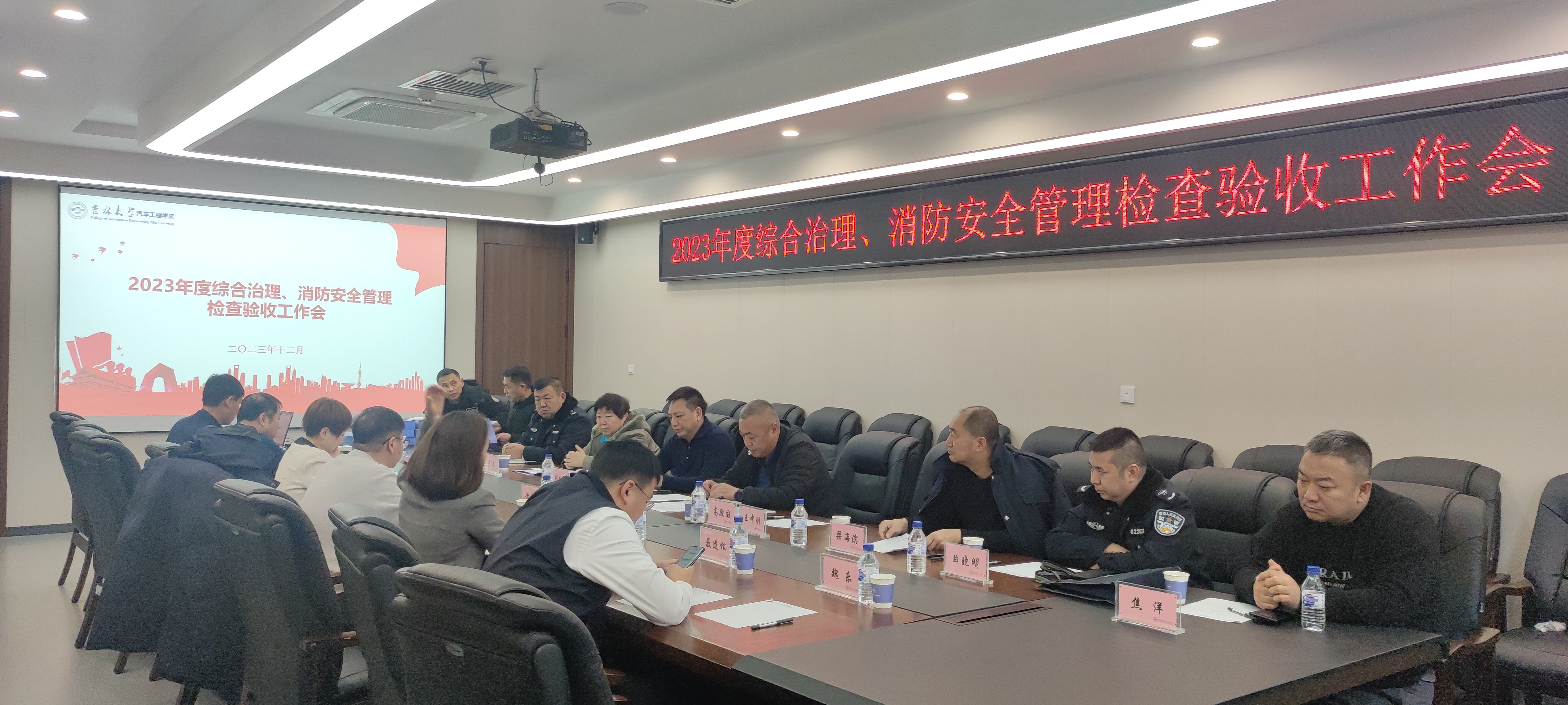 2023年12月19日下午,由公司保卫处东区保卫办主任张柏军一行组成的综合治理、消防安全管理检查验收工作组莅临beat365亚洲体育官方网站,对公司2023年度综合治理、消防管理工作进行检查验收。汽车工程公司党委书记黄忠华、副书记胡忠巍、行政副经理林海兰、副书记兼副经理聂逯松、汽车底盘集成与仿生全国重点实验室副主任王思远等参加了会议。