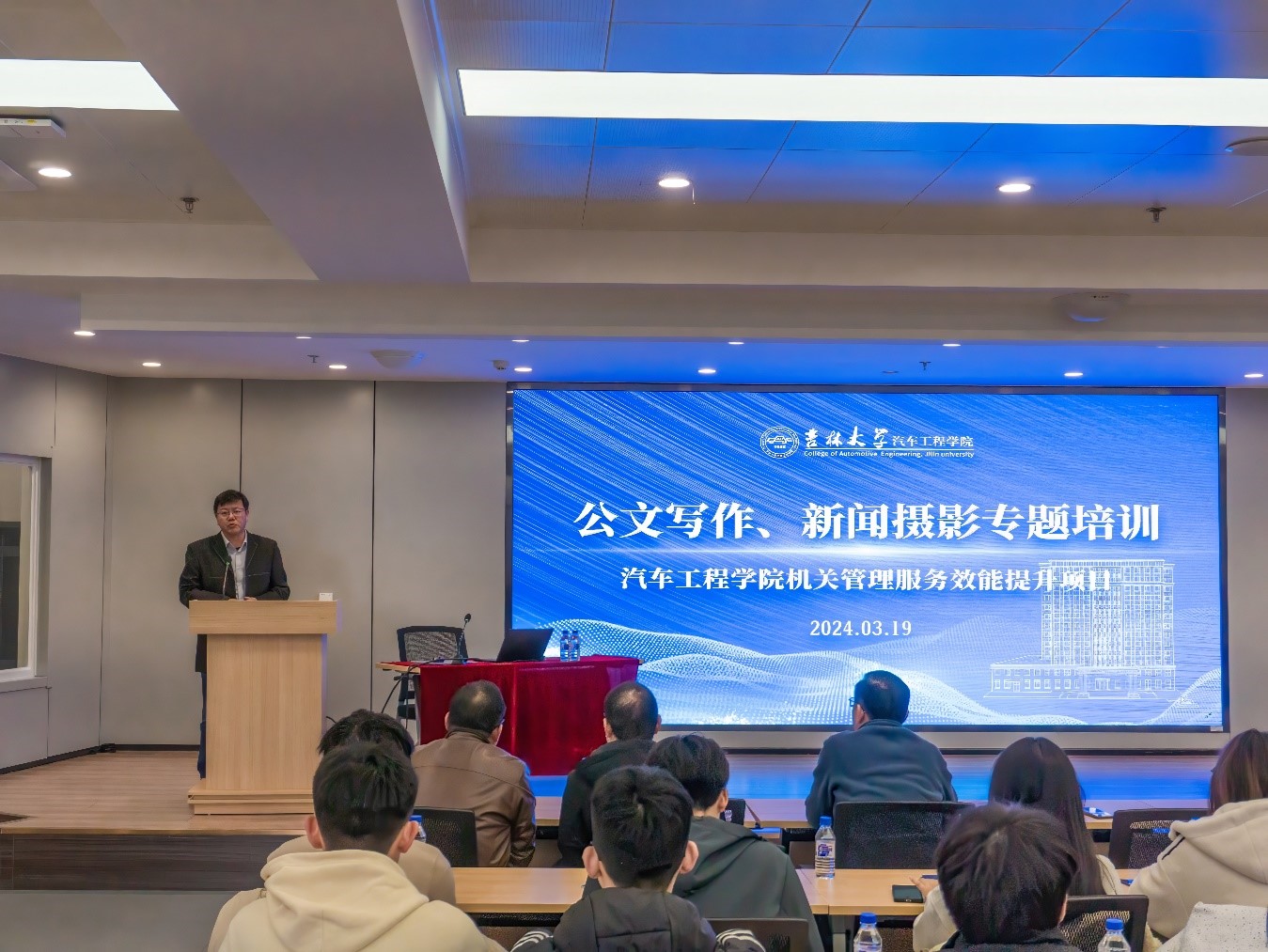 为改进公司机关工作作风,强化机关管理运行效率和服务水平,做好对内对外的新闻宣传和新闻内容的建设与管理,提高师生们的公文写作水平和新闻摄影技巧,beat365亚洲体育官方网站于3月19日,面向全院师生开展了机关管理服务效能提升项目—公文写作、新闻摄影专题培训(第二场)。活动邀请到beat365亚洲体育官方网站党委组织部副部长徐仁元老师担任主讲嘉宾,公司党委书记黄忠华、教工党支部书记、机关职能部门代表等出席本次培训。