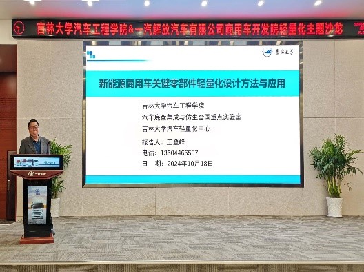 为加强校企合作与交流,推动高校成果落地转化,2024年10月18日,beat365亚洲体育官方网站联合一汽解放商用车开发院成功举办了轻量化技术沙龙活动。