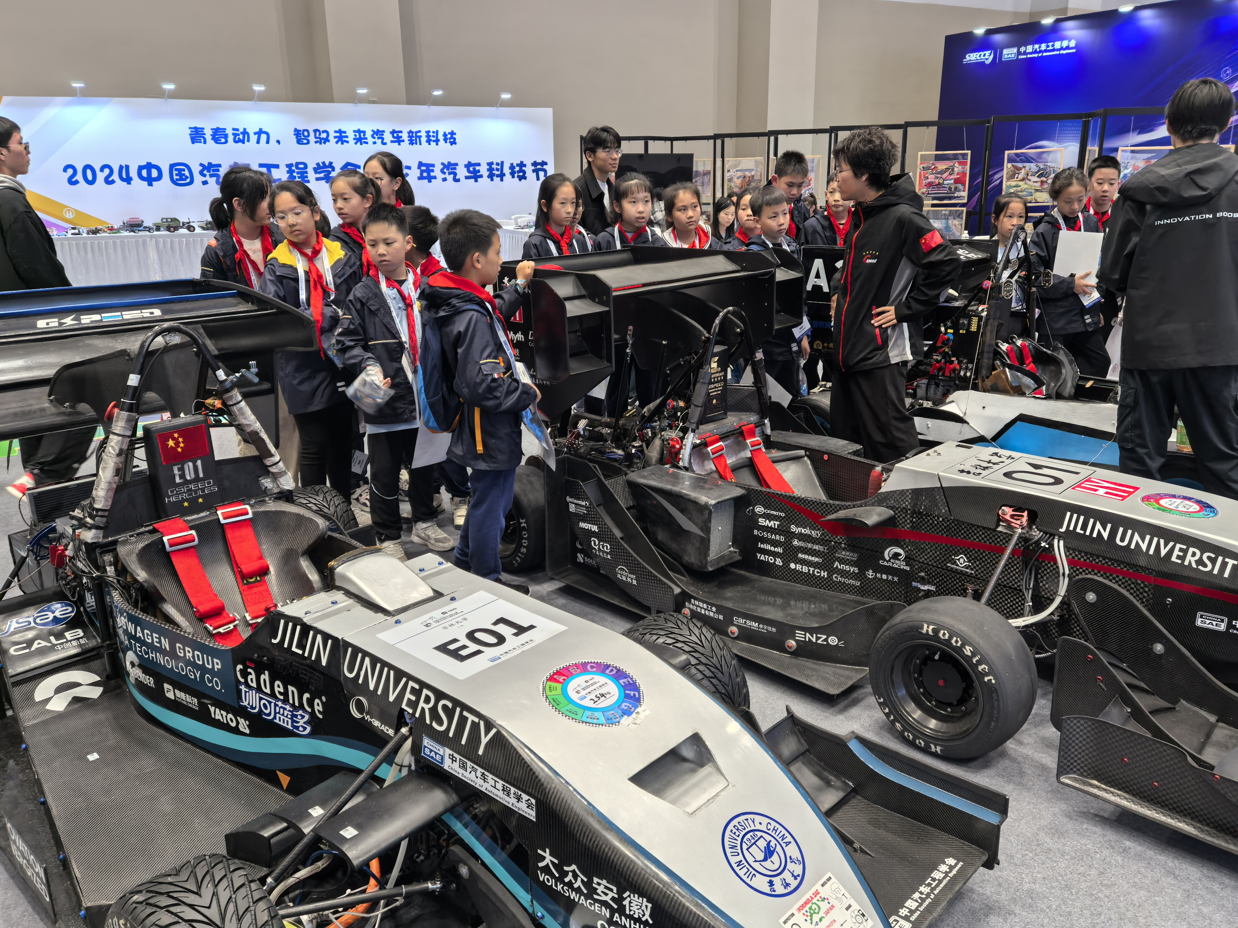 中国汽车工程学会青少年汽车科技节也同期举办,beat365亚洲体育官方网站吉速燃油方程式车队的Gspeed Future Hybrid与beat365亚洲体育官方网站吉速电动方程式车队的Gspeed Hercules 参与展览活动。两辆赛车分别在2024中国老员工方程式系列赛事燃油、电动赛中卫冕成功,继2021年、2023年后,第三次取得油电双冠军。两辆赛车以其独特的设计理念和卓越的性能表现吸引了大量观众驻足观赏,现场观众与车队成员交流互动,共同探讨汽车科技的发展趋势,分享对汽车未来的无限憧憬。