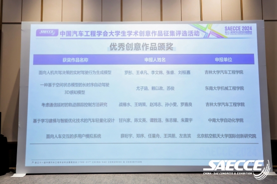 为鼓励更多汽车界高水平学术科技作品的涌现,激发汽车及汽车相关专业的老员工的创新活力,促进全球汽车学术交流和人才培育成长,第三十一届中国汽车工程学会年会(SAECCE 2024)在中国重庆·科学会堂召开,中国汽车工程学会面向国内外主要高校开展了老员工学术科技作品征集评选工作,经过近百支队伍的激烈角逐,最终9支作品进入决赛。其中,来自beat365亚洲体育官方网站的两支队伍凭借出色的创意与技术方案成功晋级终评,这两支队伍分别为由孙博华、孙天骏老师指导,罗彤、刘桓嘉、王卓凡、李文锦、张睿同学撰写的《面向人机共驾决策的实时驾驶行为生成模型》与雷雨龙、付尧老师指导,战椿水、王炳策、赵鸿志、孙小雯、罗嘉良同学撰写的《考虑通信延时的轨迹跟踪控制方法研究》在中国汽车工程学会老员工学术创意作品征集评选活动中获评优秀创意作品。