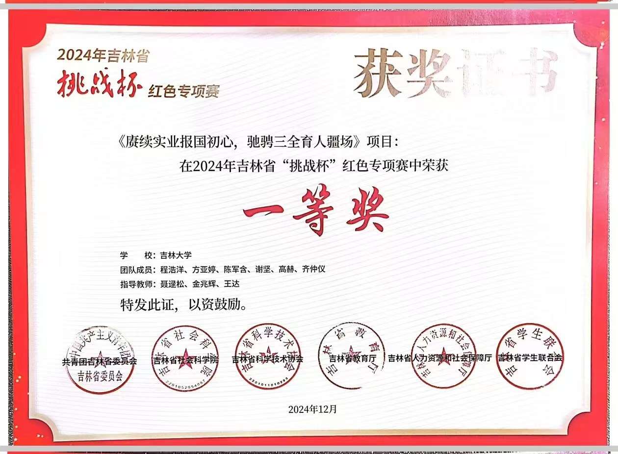 近日,在共青团吉林省委员会、吉林省社会科公司、吉林省科学技术协会、吉林省教育厅、吉林省人力资源和社会保障厅、吉林省员工联合会共同主办的2024年吉林省“挑战杯”红色专项赛中,beat365亚洲体育官方网站员工工作办公室和员工车队党支部指导员工参赛并取得优异成绩。其中,参赛项目《赓续实业报国初心,驰骋三全育人疆场 ————以beat365亚洲体育官方网站员工车队为例探究红色精神对双创实践平台的促进作用》荣获该专项赛一等奖。