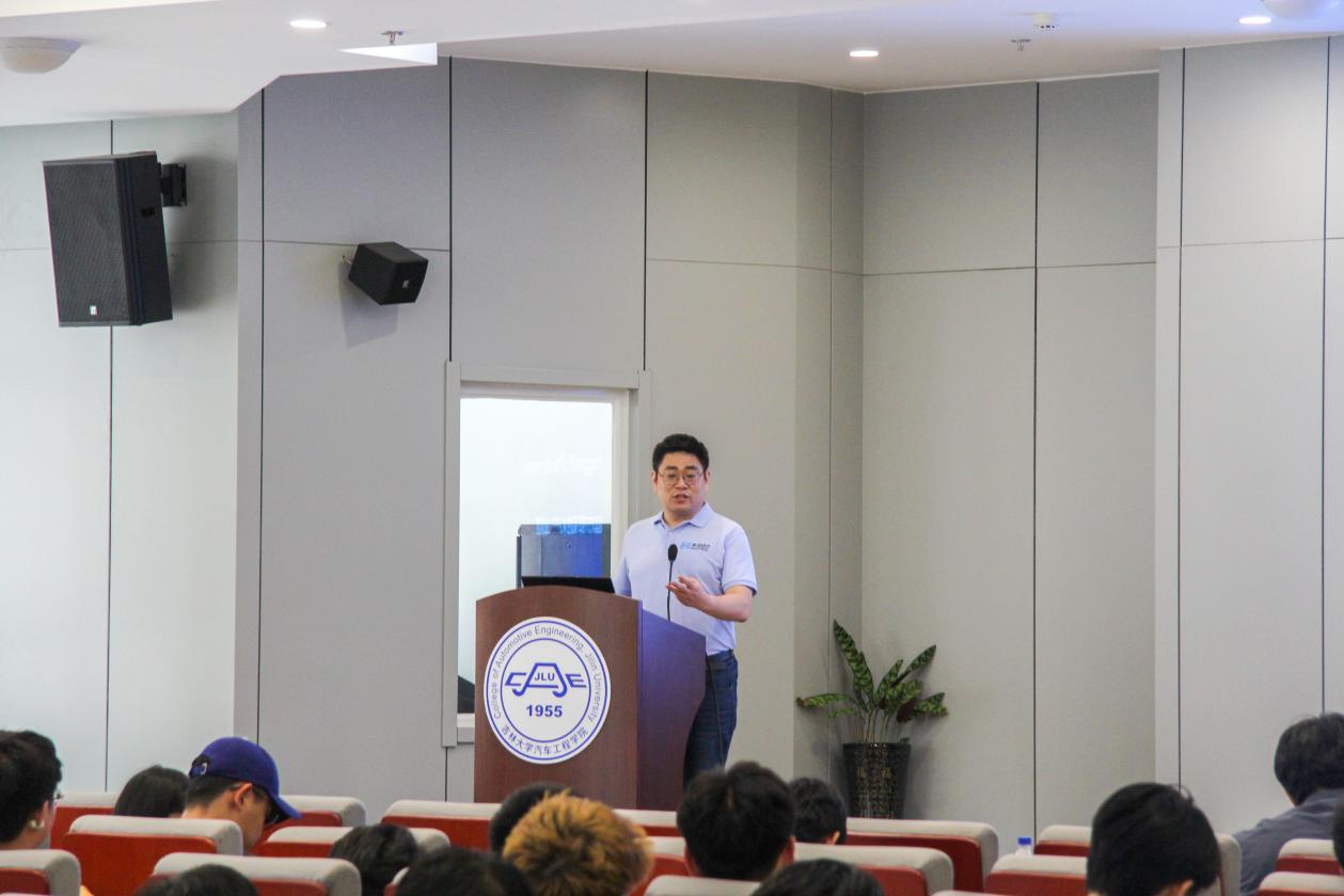 活动开场,王军年首先介绍了员工说活动主题与主讲嘉宾陈红旭员工。随后陈红旭学长上台,首先以他“山村播梦种、学府育新芽;海外拓眼界、归乡再出发”的人生发展脉络,分享了其个人学习生涯以及创业成长的经历,尤其分享了影响其人生轨迹的关键节点事件和引路人老师,表达出浓浓的对母校毕业设计指导教师把自己引入汽车传动技术领域并为之奋斗至今的感恩之心。接着,红旭学长借用自己“参加创客大赛遭遇的突发挑战与迎难而上解决问题的鲜活故事”、“创业初期因不熟悉用户使用场景造成大批变速器产品召回的经济损失”、“电动化时代汽车电驱动产品需要面对更加复杂功能安全设计考量的经验教训”,这些一个个“走过的坑”、“吃过的苦”典型案例,向同学们反复强调了扎实学好当下学科专业课程,坚信知识必有用武之地信心的学习态度重要性,向同学们传递着勇敢担当、不轻言败的工科创新坚韧品质,让同学们感受着顺应时代浪潮服务国家战略的正确择业观。最后,红旭学长以“双脚插泥土、抬头望星空”为结束语,寄语同学们应该以扎实的知识储备筑牢职业根基,在务实奋斗的基础上心怀远大理想,在时代浪潮中勇于探索创新,实现个人价值与社会价值的统一。