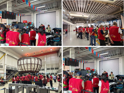 随后,员工们步行游览校园。在汽车构造馆,他们认真观摩了从传统燃油汽车到新能源汽车的整车结构、动力系统及关键零部件教具,并详细了解《专业综合认知实践》等课程的教学情况。当走进汽车底盘集成与仿生全国重点实验室时,员工们被汽车仿真与控制实验室的模拟大厅深深吸引,纷纷驻足了解汽车性能模拟器等先进研发工具的应用场景。在“辕梦工场”员工车队展区,队员们热情讲解参赛赛车的创新设计理念与精密制造工艺,分享车队在国内外赛事中屡创佳绩的精彩故事,员工们对汽车学子展现出的卓越创新能力和工程实践水平给予高度评价。一路走来,员工们难掩激动之情。从汽车构造实验室到国家级重点实验室,从传统教具到智能研发平台,从单一学科到国际化教学体系,公司四十年来在汽车领域的跨越式发展令大家倍感震撼。“这些成就不仅凝聚了几代吉大人的智慧与汗水,更见证了中国汽车工业从跟跑到领跑的伟大飞跃!”一位员工的感慨,道出了所有人的心声。