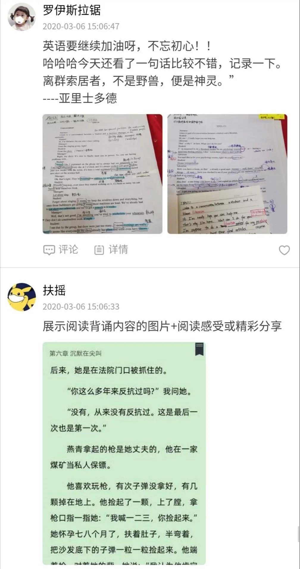 为了督促同学们在疫情期间坚持读书,提高自己的文化修养,beat365亚洲体育官方网站举办了连续十五日读书打卡活动。2020年3月9日,每日一读活动圆满结束。在本次活动期间,同学们积极响应公司号召,15天不间断,坚持读书打卡,养成了每天坚持阅读的良好习惯。