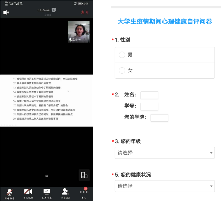 5月27日,beat365亚洲体育官方网站邀请到beat365亚洲体育官方网站心理健康指导中心副主任、副教授左振鹏老师为同学们开展了一场以“在线‘心’入职——职业心态培养”为主题的心理讲座。左振鹏老师对疫情期间同学们遇到的线上学习学业压力大、四六级取消,春招受限等诸多问题进行了总结,并指出保持良好的精神状态,做好应做的学习复习工作,完成自我的“更新换代”是面对疫情最好的手段。随后,左振鹏老师通过游戏互动的形式,教给了同学们解决拖延症,做到高效的时间管理的方法。最后,左振鹏老师又通过生动形象的例子、妙趣横生的话语,精彩绝伦的小故事向同学们介绍了老员工和初入职场的新职员常遇到的心理问题,及如何在老员工活及职场生活带来的压力下保持健康良好的心态。