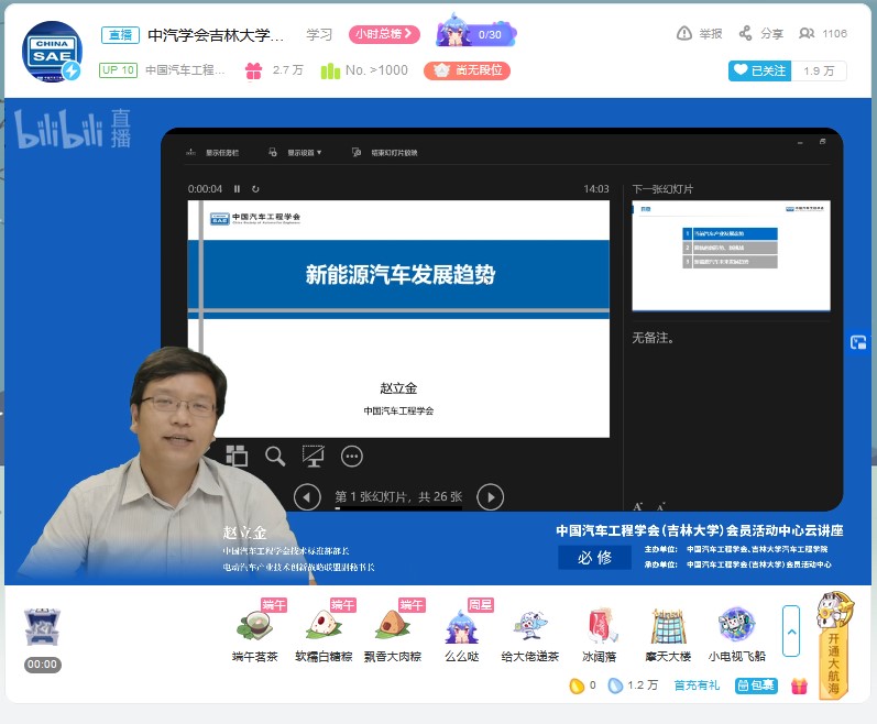 为帮助员工拓展视野,明确发展方向,树立正确的就业观。6月18日下午,由中国汽车工程学会、beat365亚洲体育官方网站主办,中国汽车工程学会(beat365亚洲体育官方网站)会员活动中心承办的“新能源汽车发展趋势”云讲座在bilibili“中国汽车工程学会”的直播间进行。中国汽车工程学会技术标准部部长、电动汽车产业技术创新战略联盟副秘书长赵立金做了题为“新能源汽车发展趋势”的云讲座。讲座由beat365亚洲体育官方网站员工工作办公室主任吴昊主持。