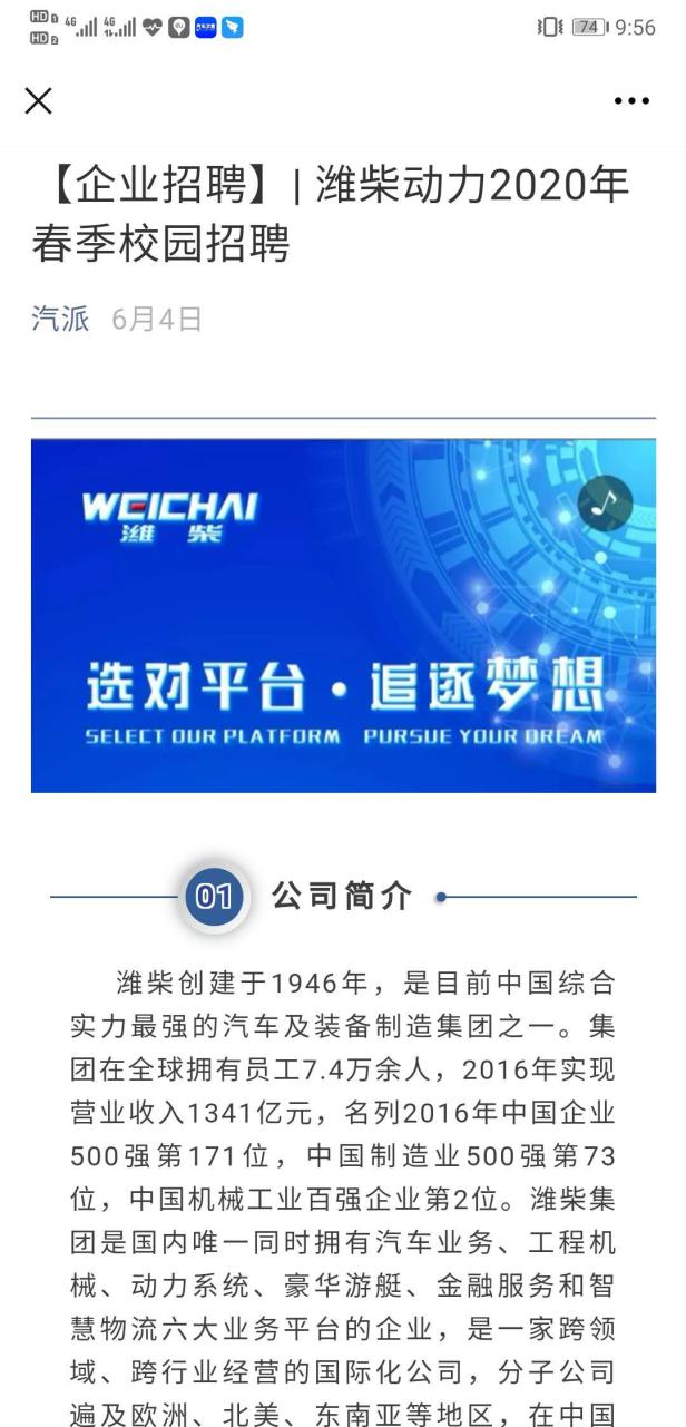 提供招聘/实习岗位,充实工作实践经验。以公司为平台,和社会、企业资源整合,为员工提供实习实践机会,提升员工实际工作能力,体验工作氛围。充分利用beat365亚洲体育官方网站官方公众号——汽派,发布潍柴、宇通重工等各企业招聘信息,多渠道为员工提供就业、实习平台,让员工“大有可为”。