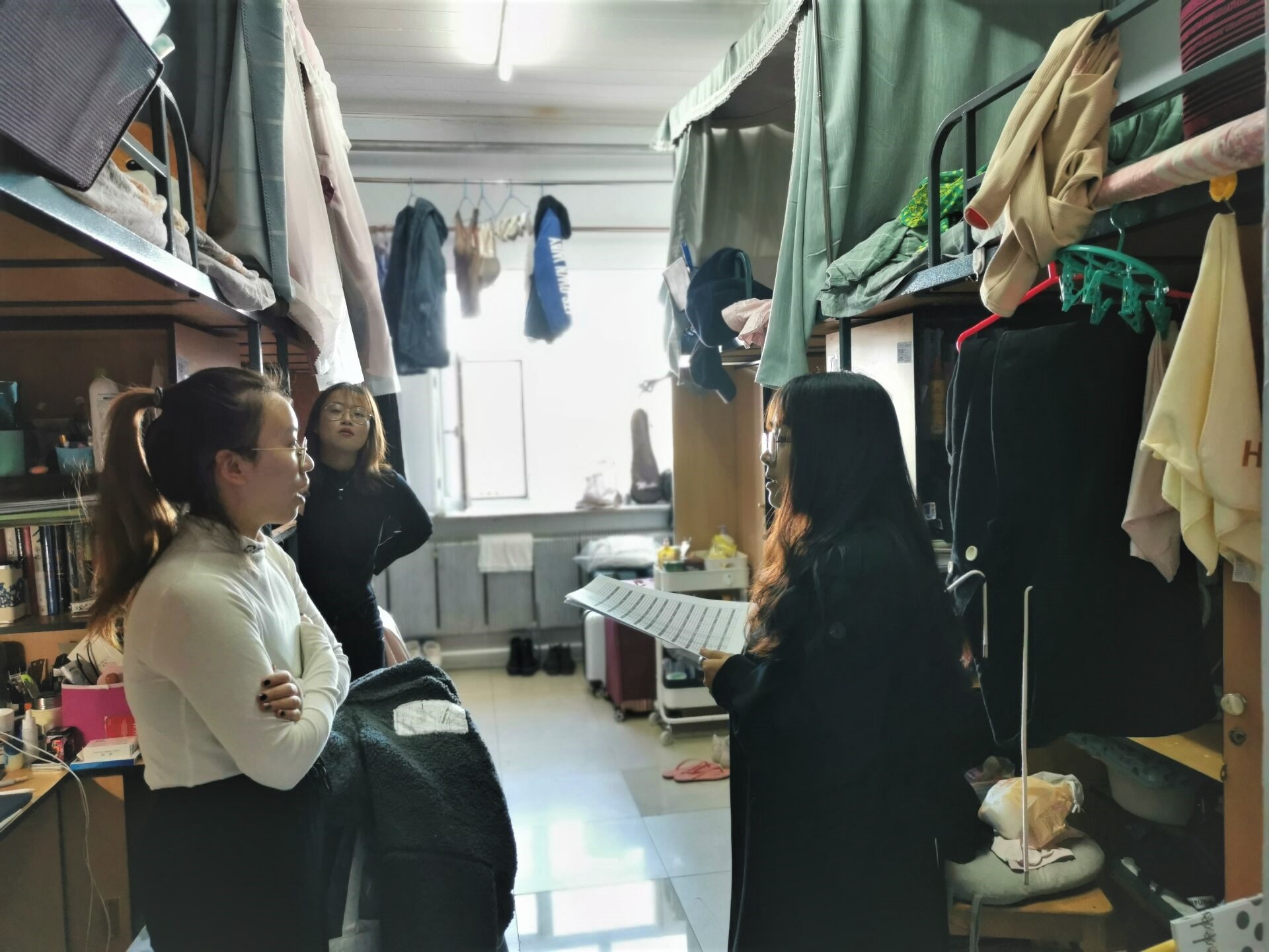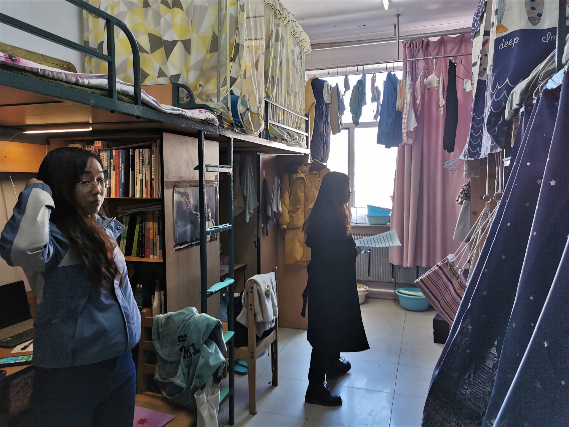 在本次的查寝过程中,李娇老师对十一公寓的环境卫生,用电安全进行了检查,保证同学们人身安全和卫生管理的同时也询问了员工们的学习与生活状况,并细心叮嘱员工们不仅要保持健康积极的心理,也要注意在校的学习生活规律。在与同学们的谈话中,李娇老师也对同学们的老员工活提出了一些建议,并且希望同学们能珍惜在校的时光,规划学习进度,找到前进的动力及方向。