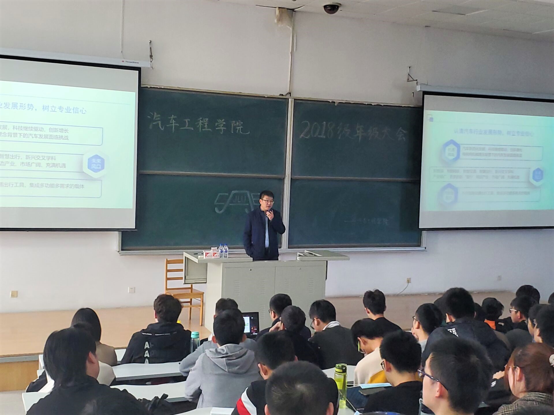 为让同学们认清汽车行业发展趋势,树立专业自信,增强日常生活管理,beat365亚洲体育官方网站于2020年10月29日中午12:30在逸夫教育大楼B416召开2018级年级大会,汽车工程公司党委副书记兼副经理盛磊老师、2018级辅导员张晓佳老师出席会议。